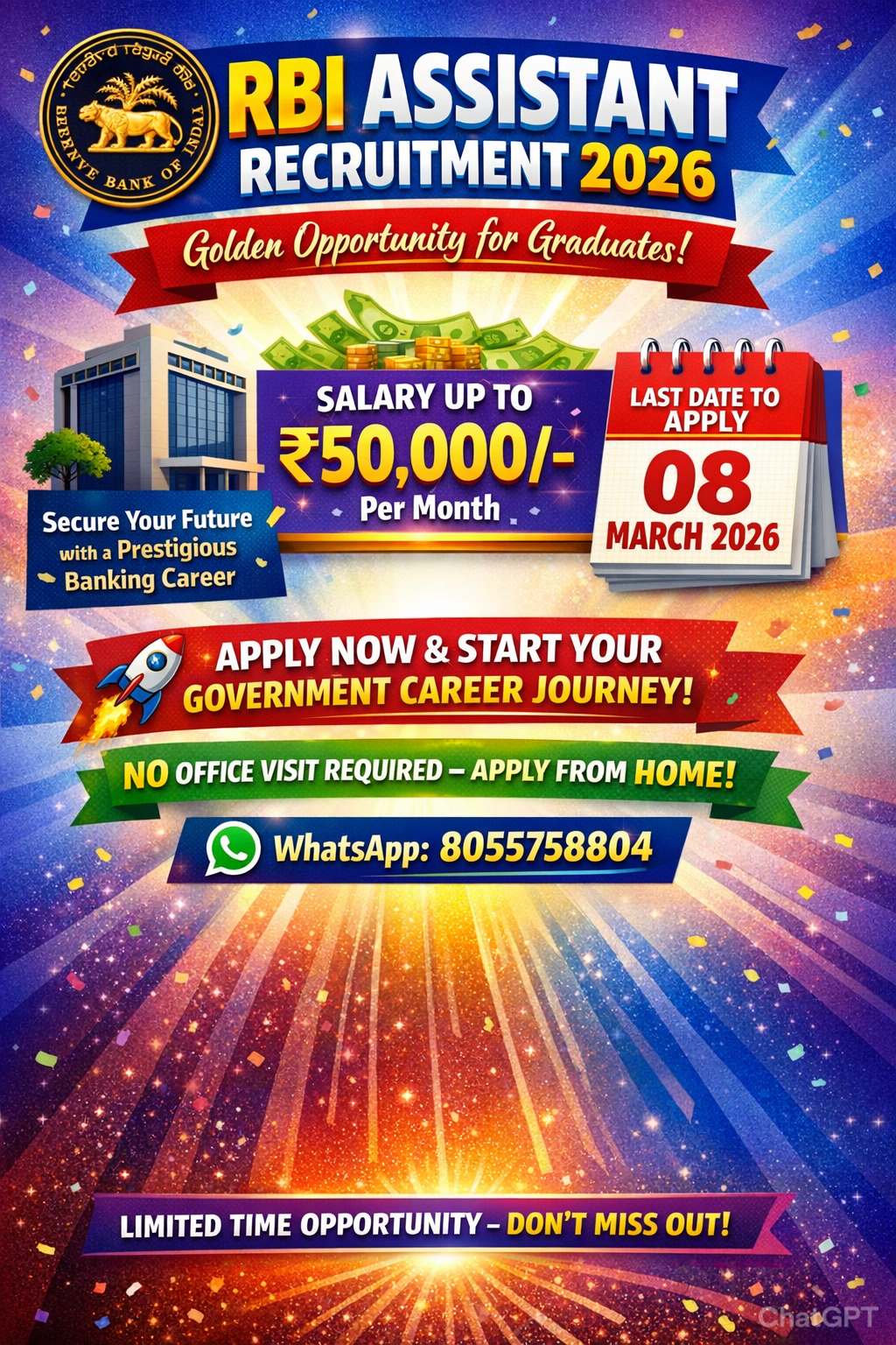 RBI Assistant Bharti 2026: 08 рдорд╛рд░реНрдЪрдкреВрд░реНрд╡реА рдЕрд░реНрдЬ рдХрд░рд╛ | рд╡реЗрддрди тВ╣50,000 рдкрд░реНрдпрдВрдд | рдШрд░рдмрд╕рд▓реНрдпрд╛ рдЕрд░реНрдЬ рд╕реБрд╡рд┐рдзрд╛